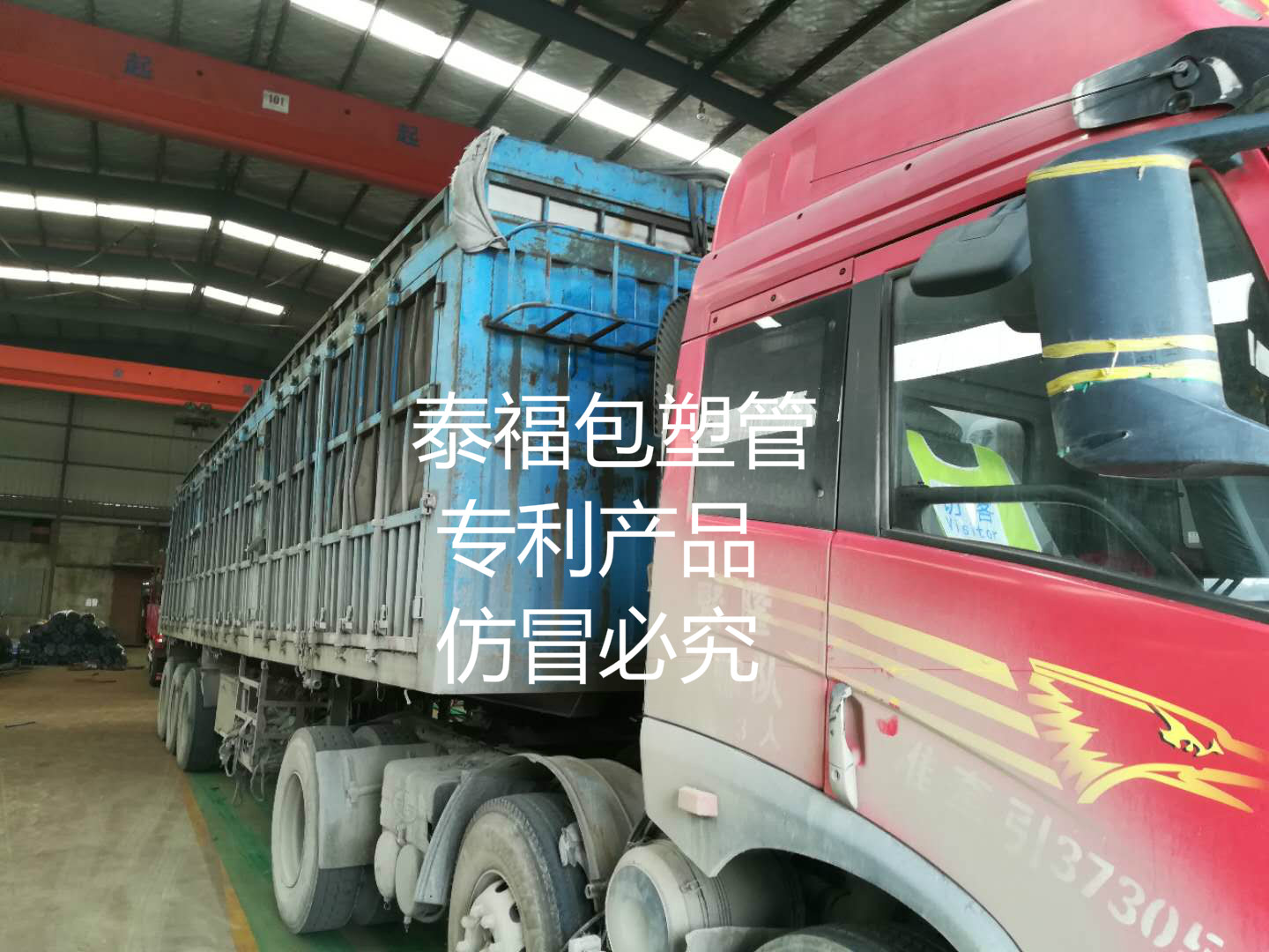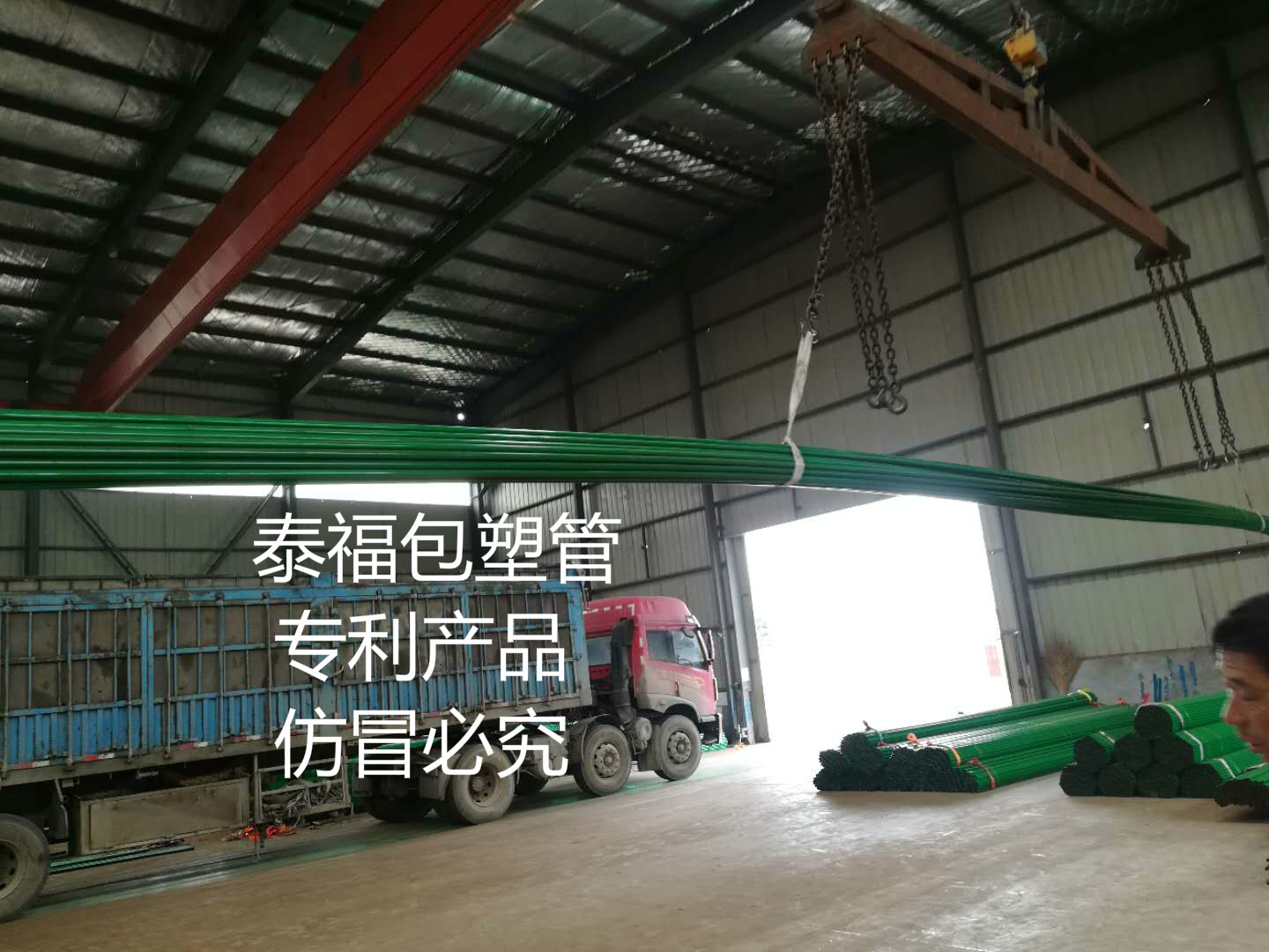 正在裝車的是發(fā)往山東的外包塑管,以下是高清圖片: